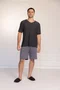 Malha Suede, composição 97% poliéster e 3% Elastano.