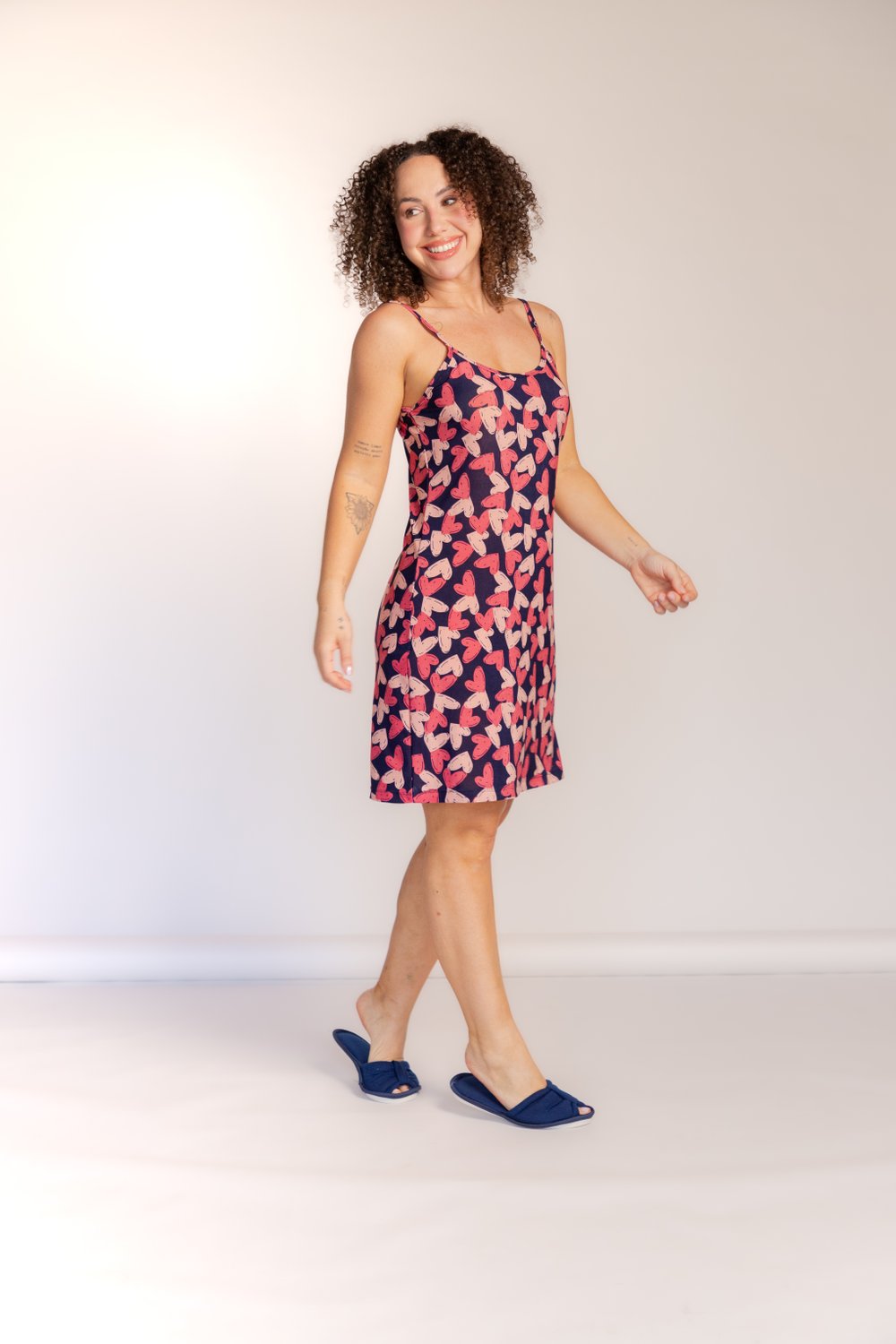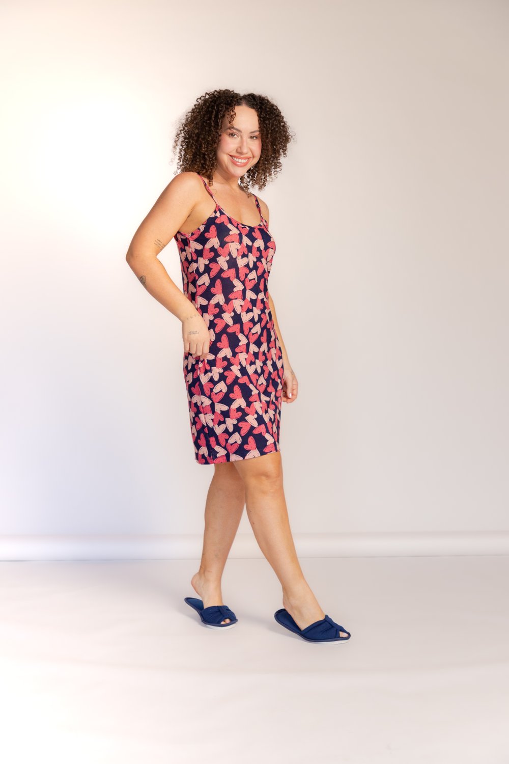 Camisola com toque geladinho, alça básica de viés, modelo reto, bainha tradicional, vestindo muito bem, super confortável, delicada e linda. Ótima opção para os dia quentes.