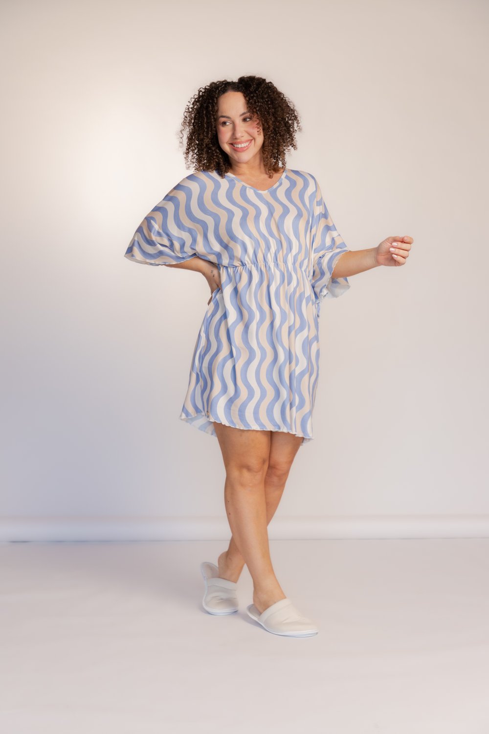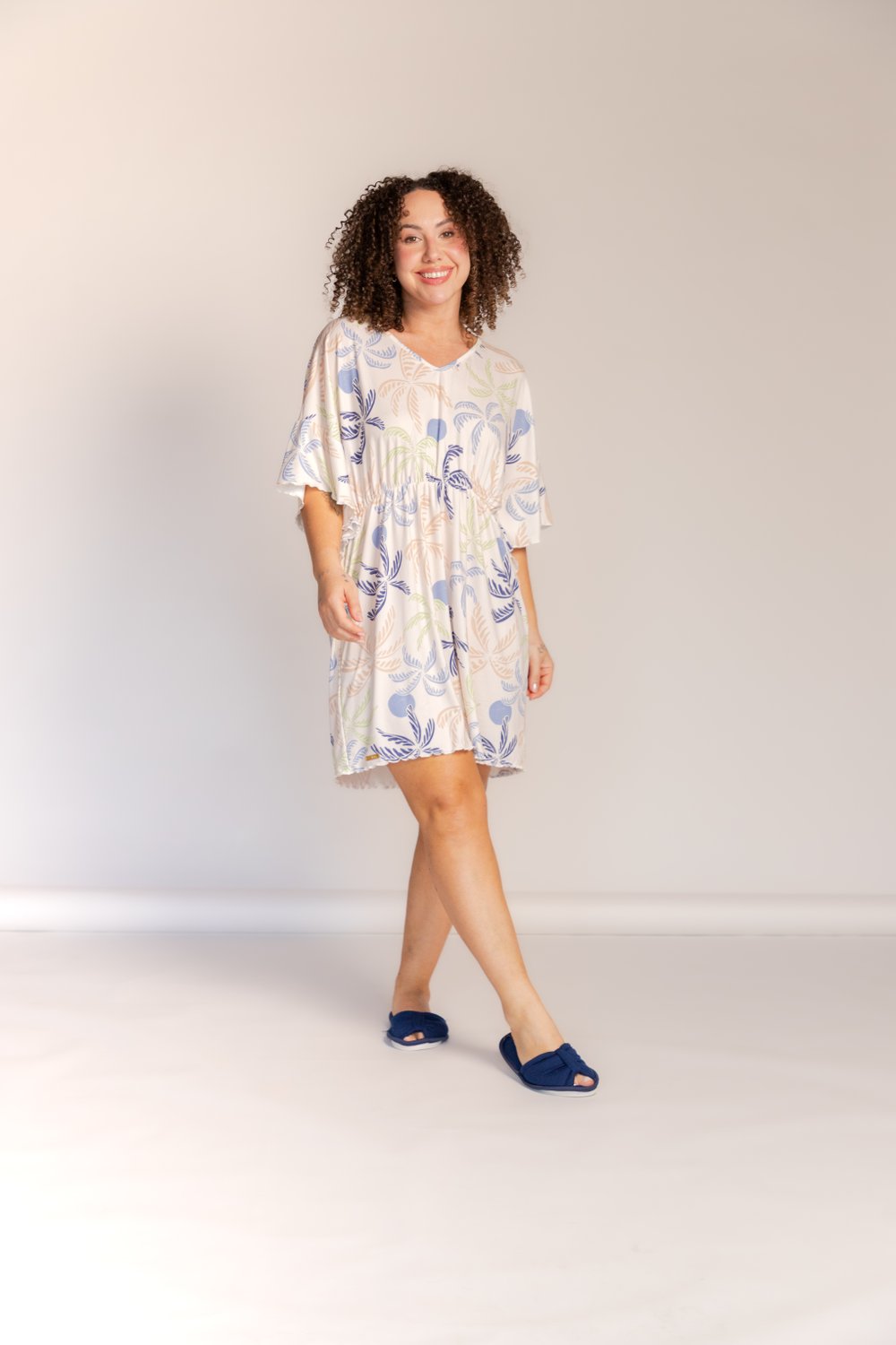 Camisola estampada com toque macio, manga curta, decote com viés, modelo morcego, bainha frufru, vestindo muito bem, super confortável, delicada e linda. Tamanho P ao GG