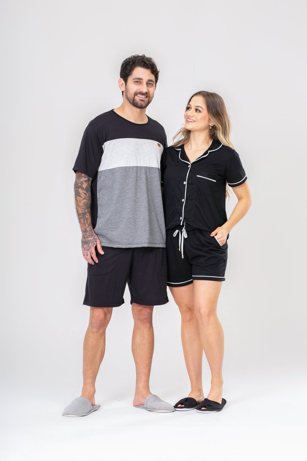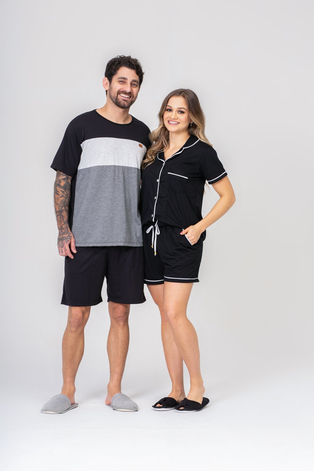 Pijama Americano Liso de Poliviscose Blusa Aberta Manga Curta