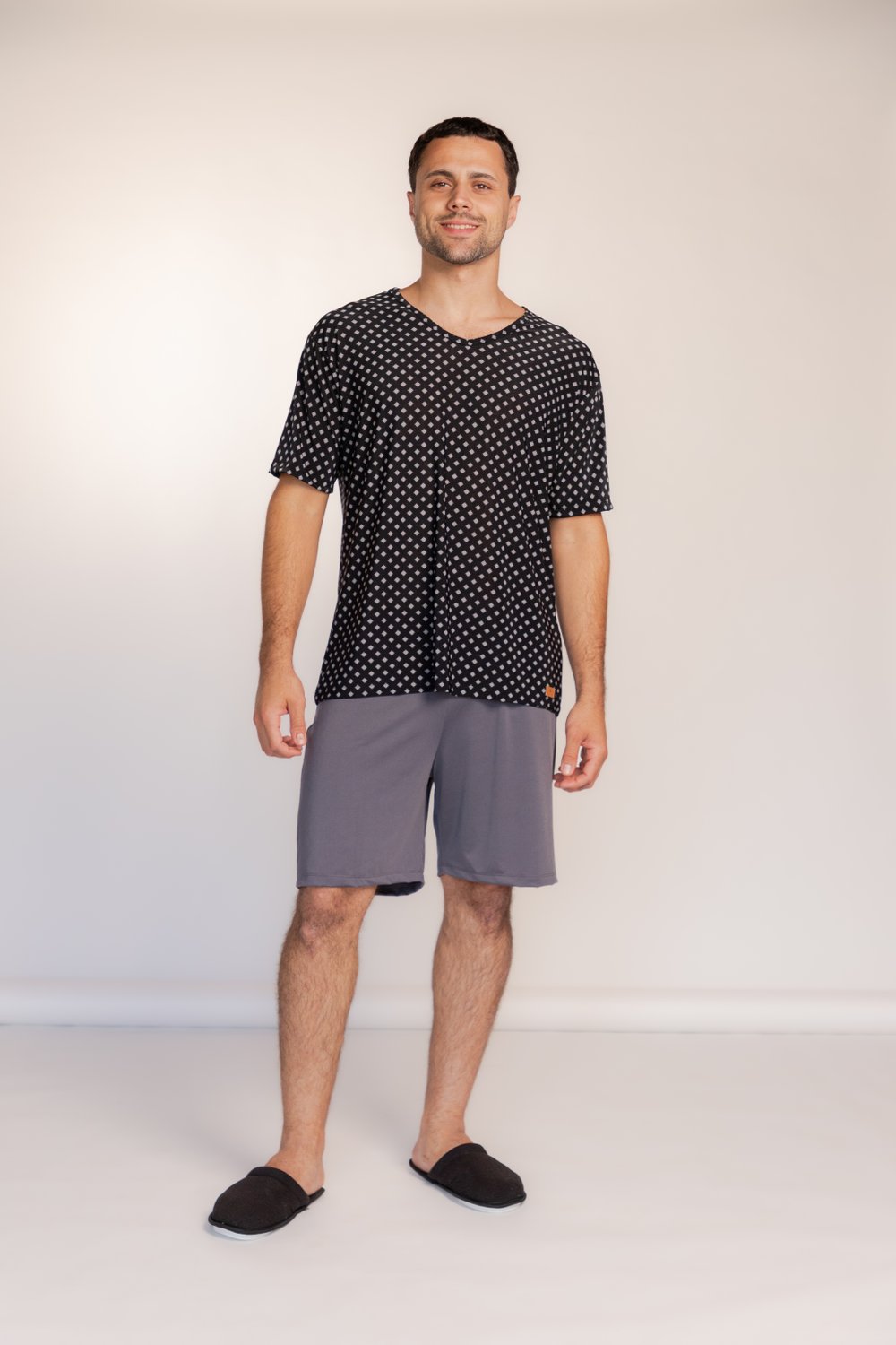 Pijama de Liganete Blusa com Manga Curta Masculino