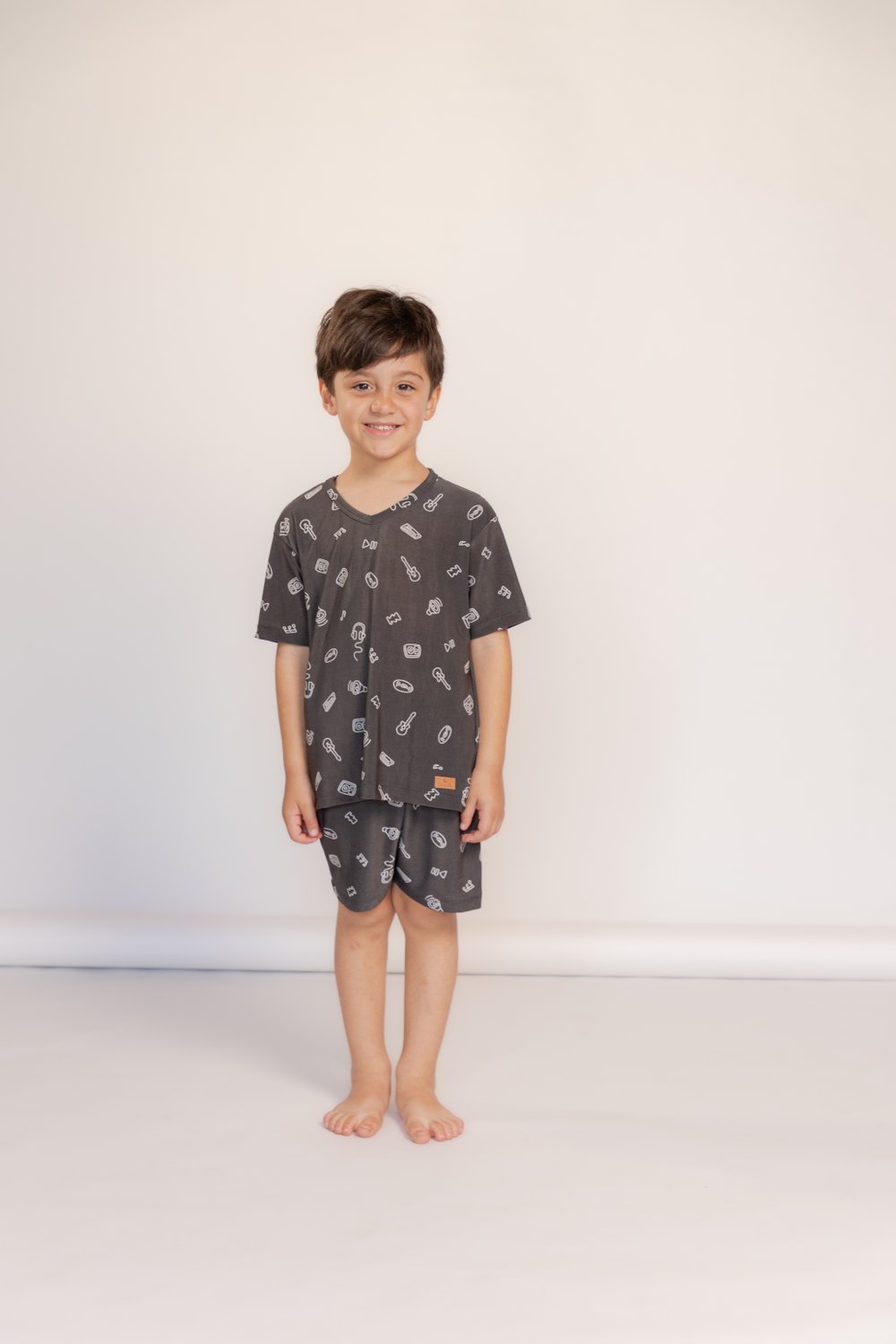 Pijama de Liganete Blusa com Manga Curta Masculino Infantil
