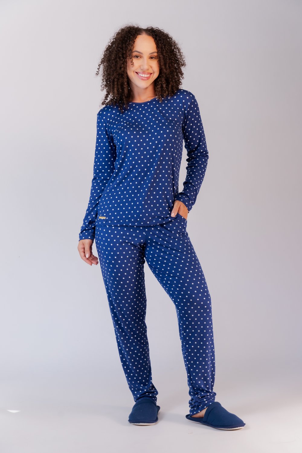 Conjunto de pijama suede, decote redondo, modelo reto, bainha tradicional, calça com cós e bolso funcional, detalhe na tira com terminal dourado, moderno e jovial, proporciona conforto e leveza. Tamanhos do P ao GG.