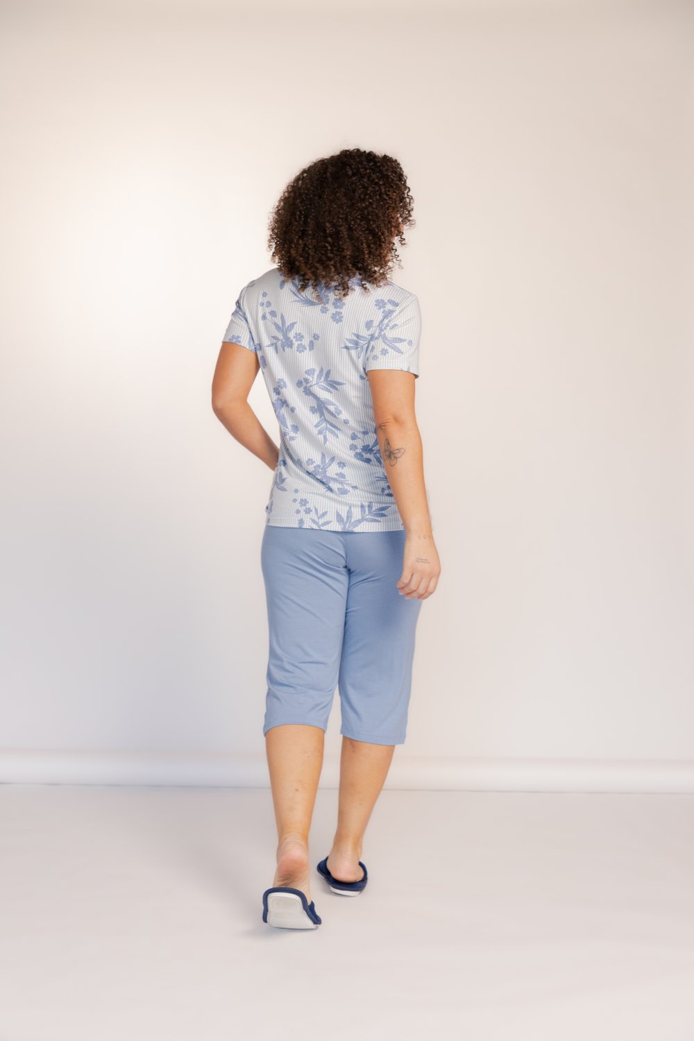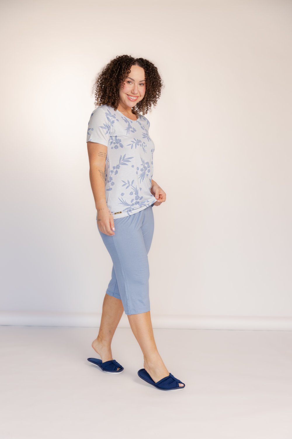 Conjunto de pijama com toque geladinho, modelo reto, bermuda com elástico embutido, proporciona conforto e leveza, além de beleza.