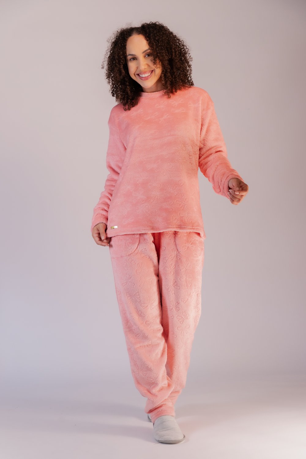 Conjunto de pijama fleece, blusa decote redondo com estampa em 3D, modelo reto bainha tradicional, calça com elástico embutido e bainha tradicional, quentinho e confortável, ideal para os dias mais frios. Do P ao GG.