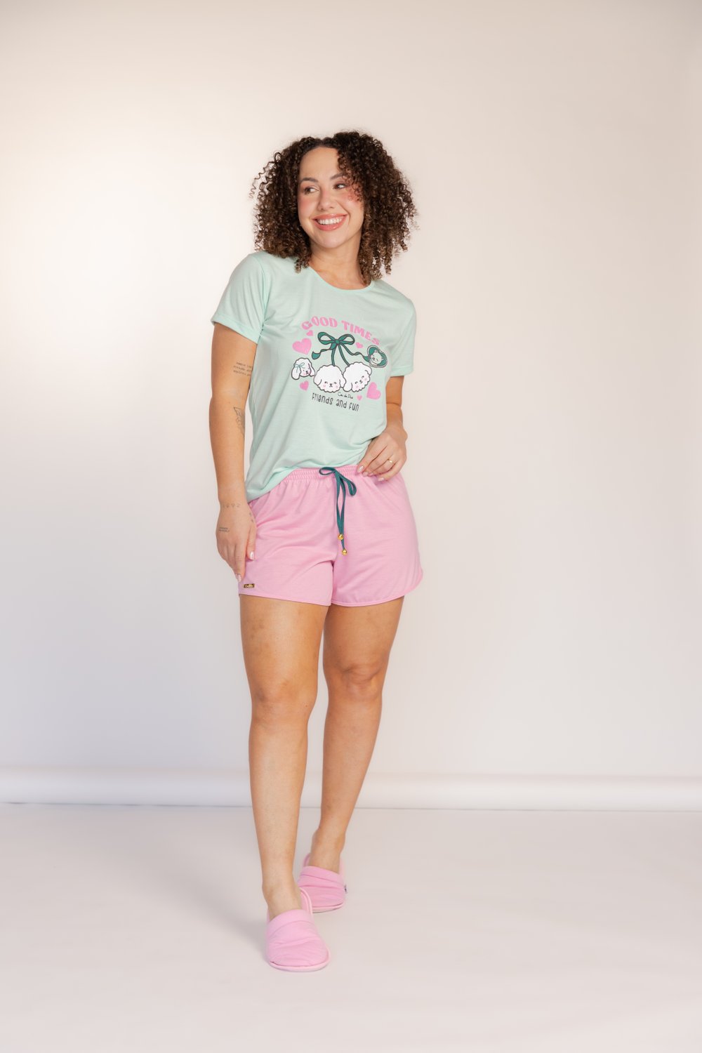 Conjunto de pijama, camiseta manga curta, viés da cor da peça bainha tradicional com 3 opções de estampa, coala, bota boiadeira, e urso tipo bobbie goods bainha reta tradicional, bermuda com elástico embutido, cordões com terminais em dourado, bainha com viés. Malha respirável mantém a pele fresquinha a noite toda. Ideal para quem busca um pijama fofo, confortável e durável.