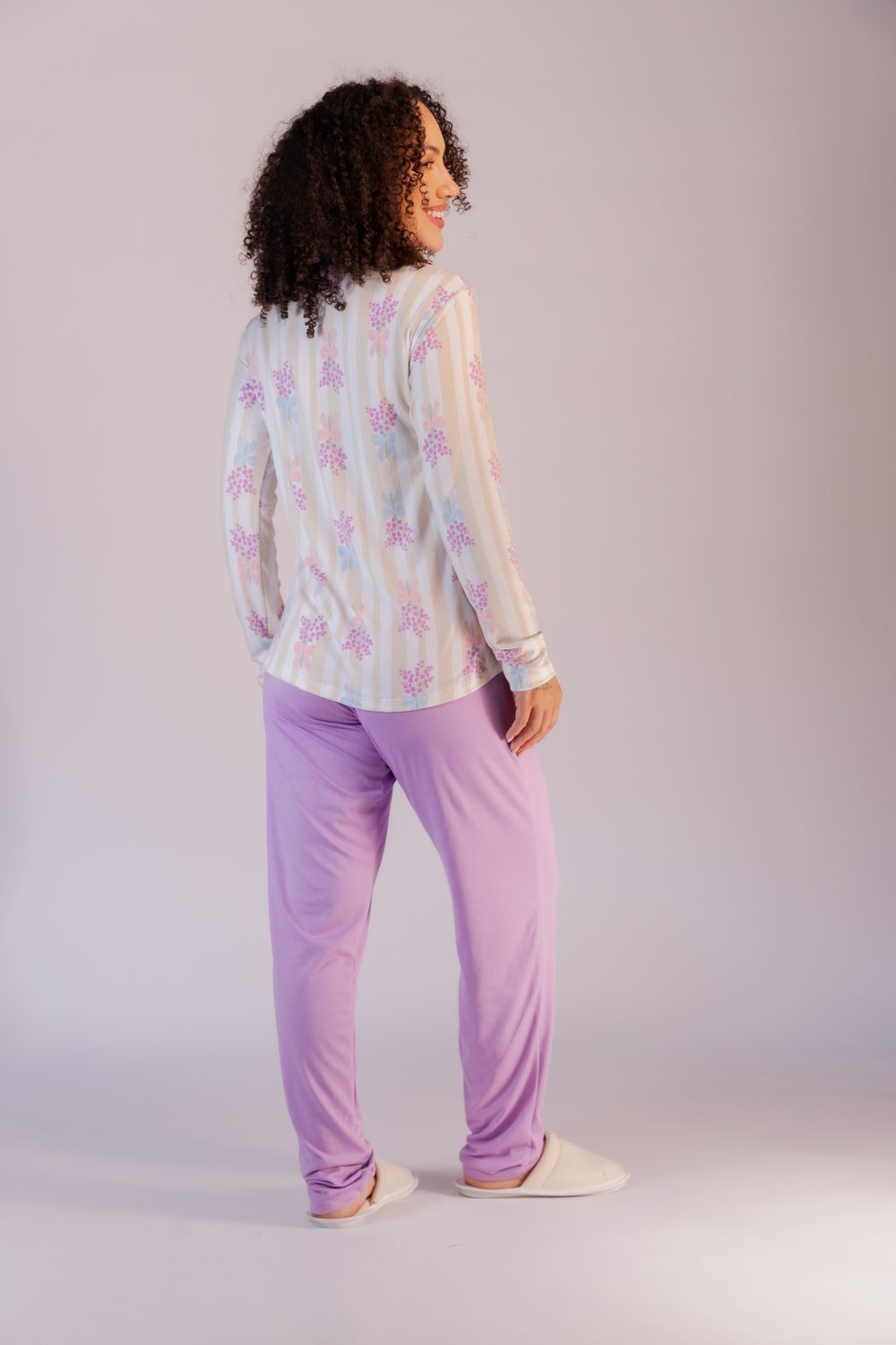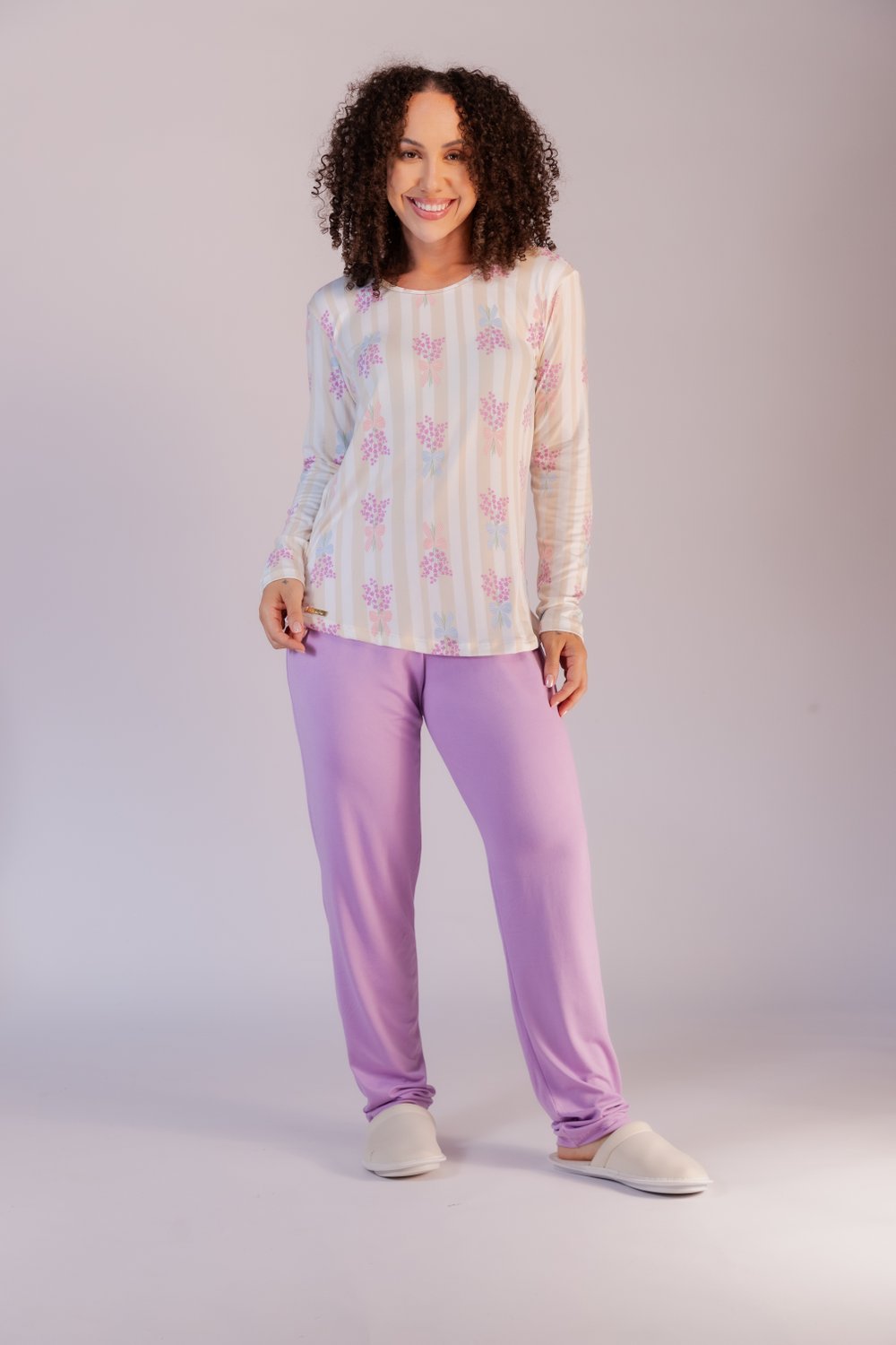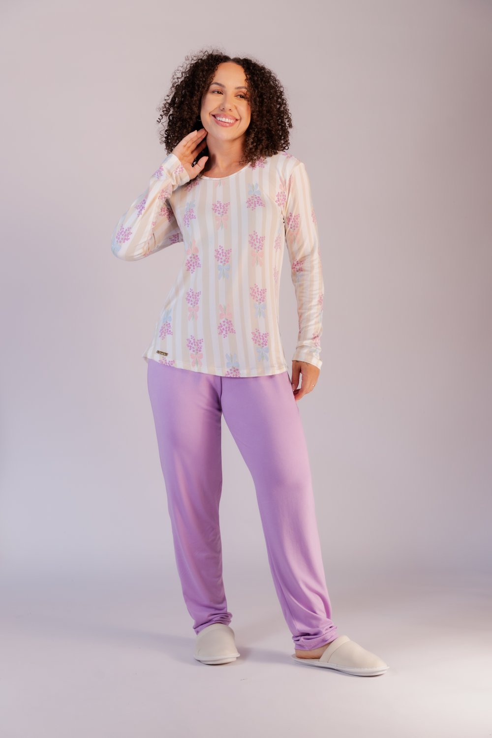 Conjunto de pijama Feminino suede manga longa estampado, decote redondo com viés da cor da peça, modelo reto, bainha tradicional, calça lisa, bainha reta, proporciona conforto e leveza, além de beleza. Tamanho P ao GG
