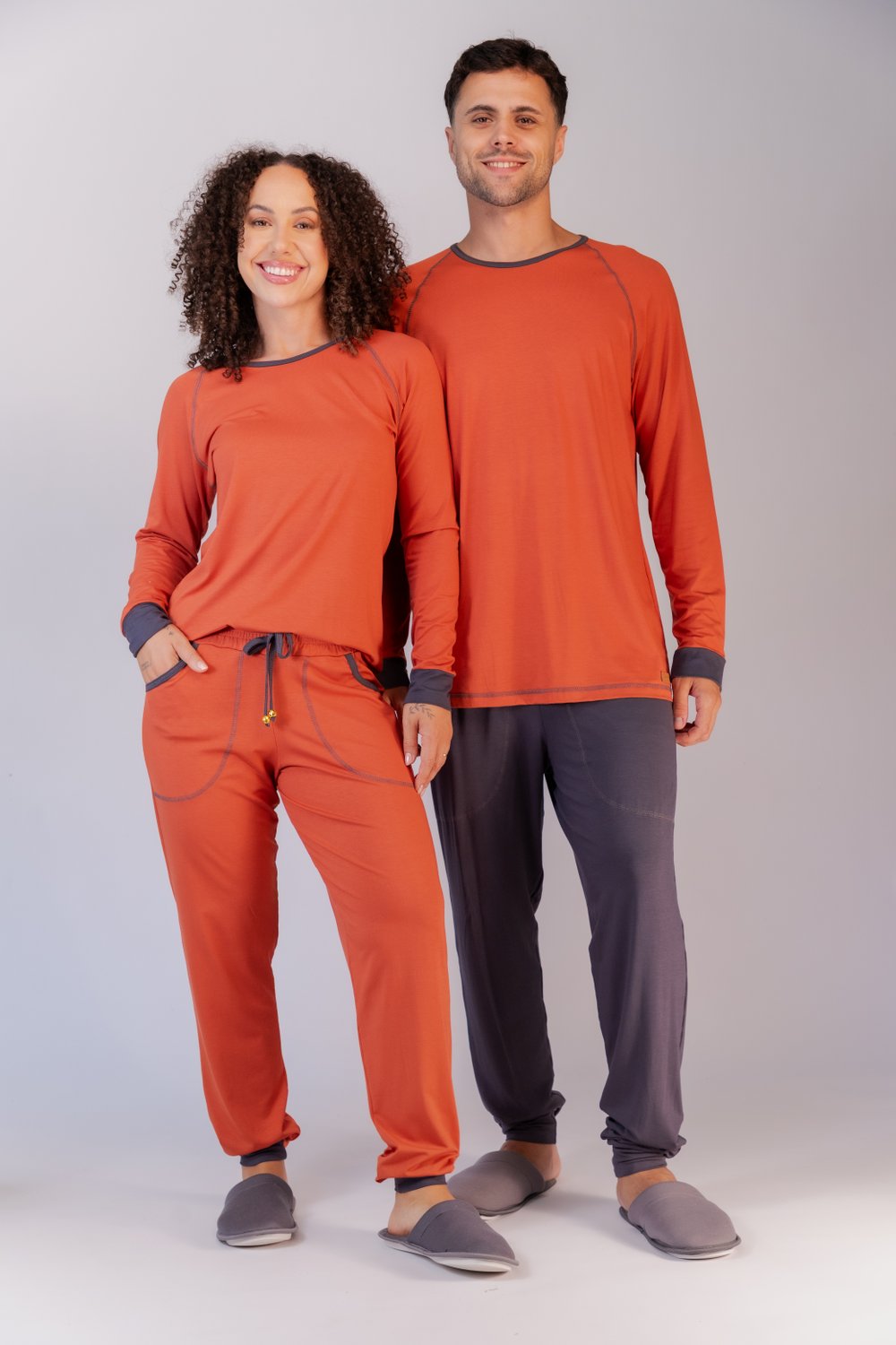 Conjunto de pijama feminino em visco lycra , blusa lisa costuras com trama, punhos de outra cor dando uma charme na peça, decote redondo com vivo, modelo reto, bainha tradicional, calça jogger lisa com elástico embutido, com bolso funcional proporciona conforto e leveza, além de beleza.