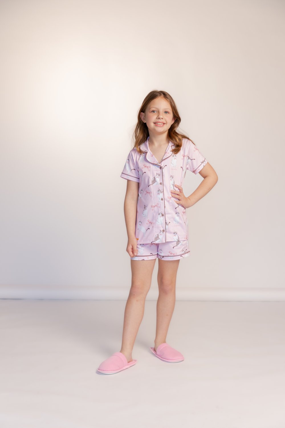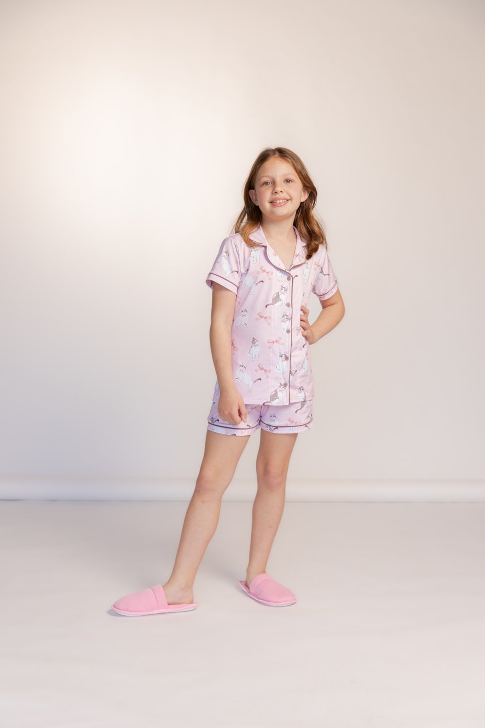 Pijama Infantil Curto Americano – Gatinhos Rosa