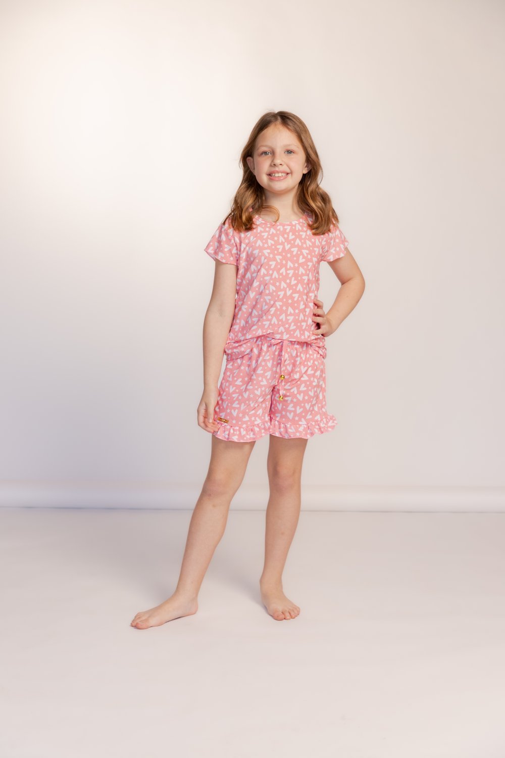 Pijama de Liganete Blusa Manga Short Babado Infantil