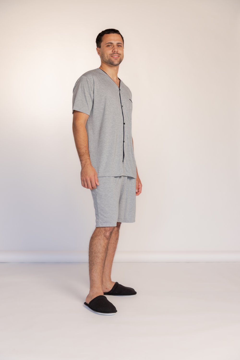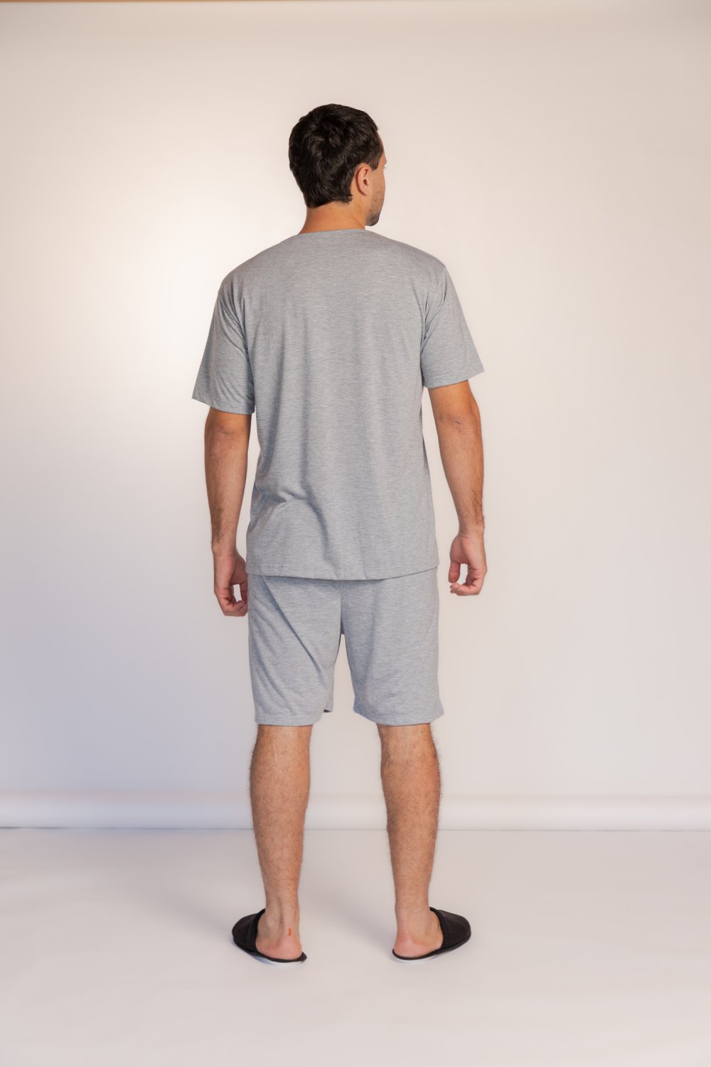 Pijama masculino curto desenvolvido para proporcionar conforto, praticidade e estilo nas suas noites de descanso. Produzido em tecido leve e macio, oferece ótima respirabilidade e liberdade de movimentos, sendo ideal para dias mais quentes ou para quem busca bem-estar em casa.