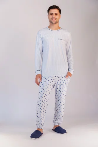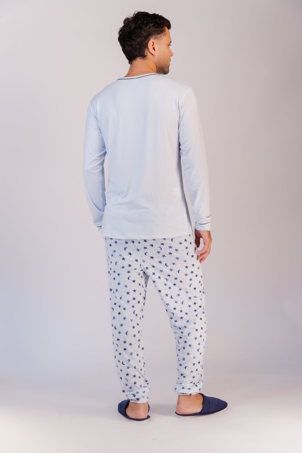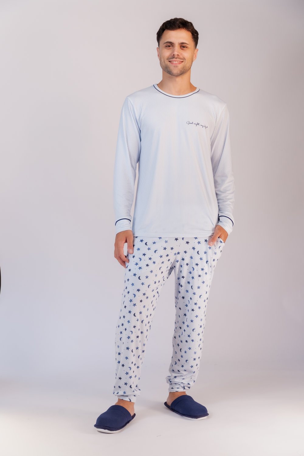 Pijama Dreams estampado , blusa decote em redondo com viés e vivo aplicado, manga longa com barra e vivo aplicado no punho, calça jogger com bolso funcional, bainha com punho, elástico embutido, proporciona conforto e leveza, além de beleza. Tamanhos do P ao GG.