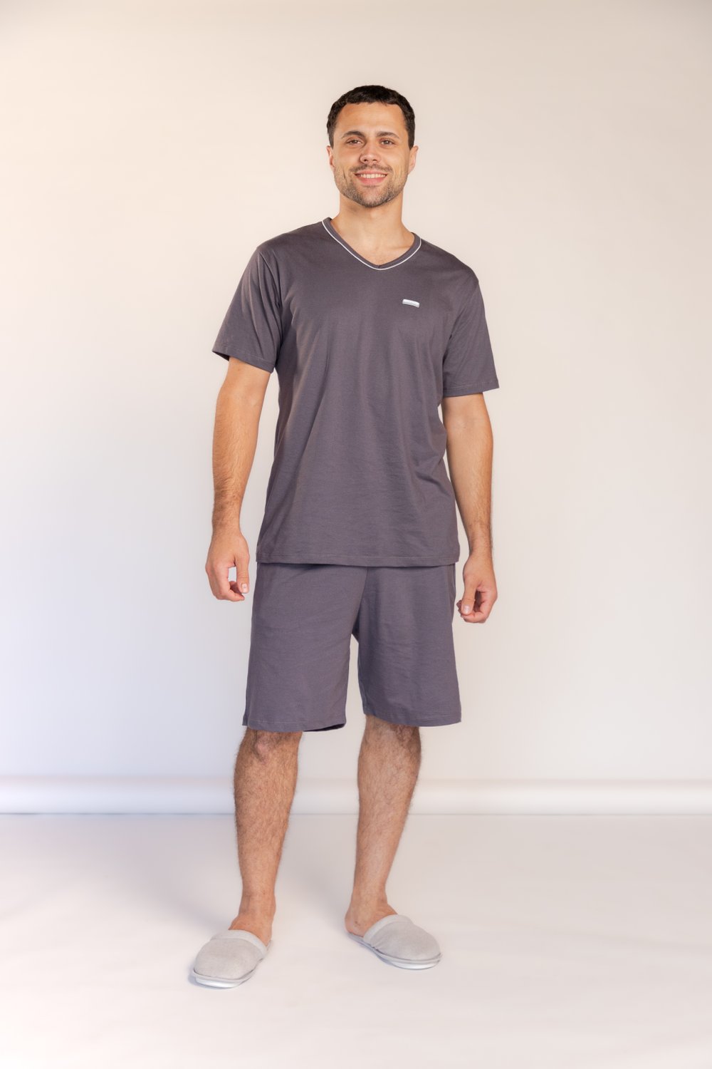 Pijama Masculino manga curta 100% algodão Disponível nas cores Grafite, Marrom e Azul Marinho