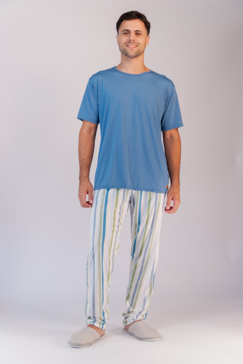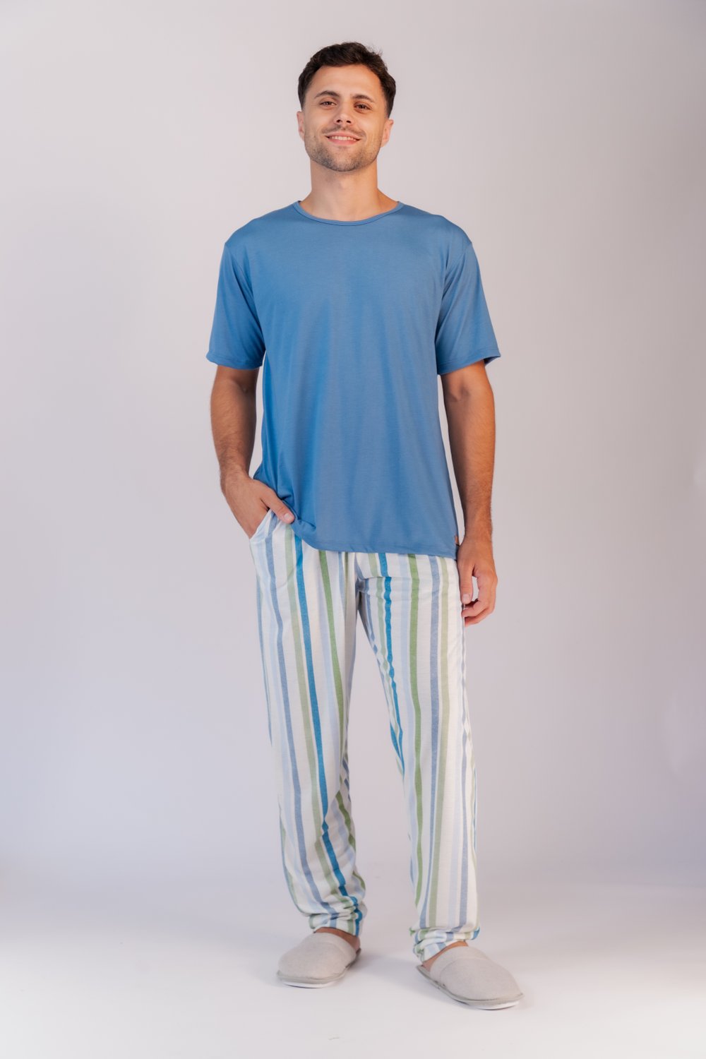 Pijama Manga Curta com Calça estampa malha Poliviscose