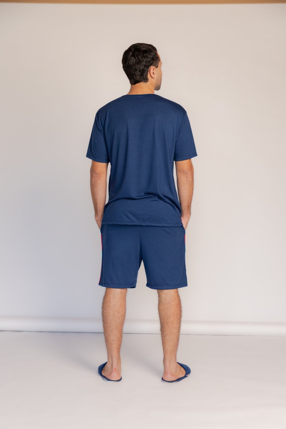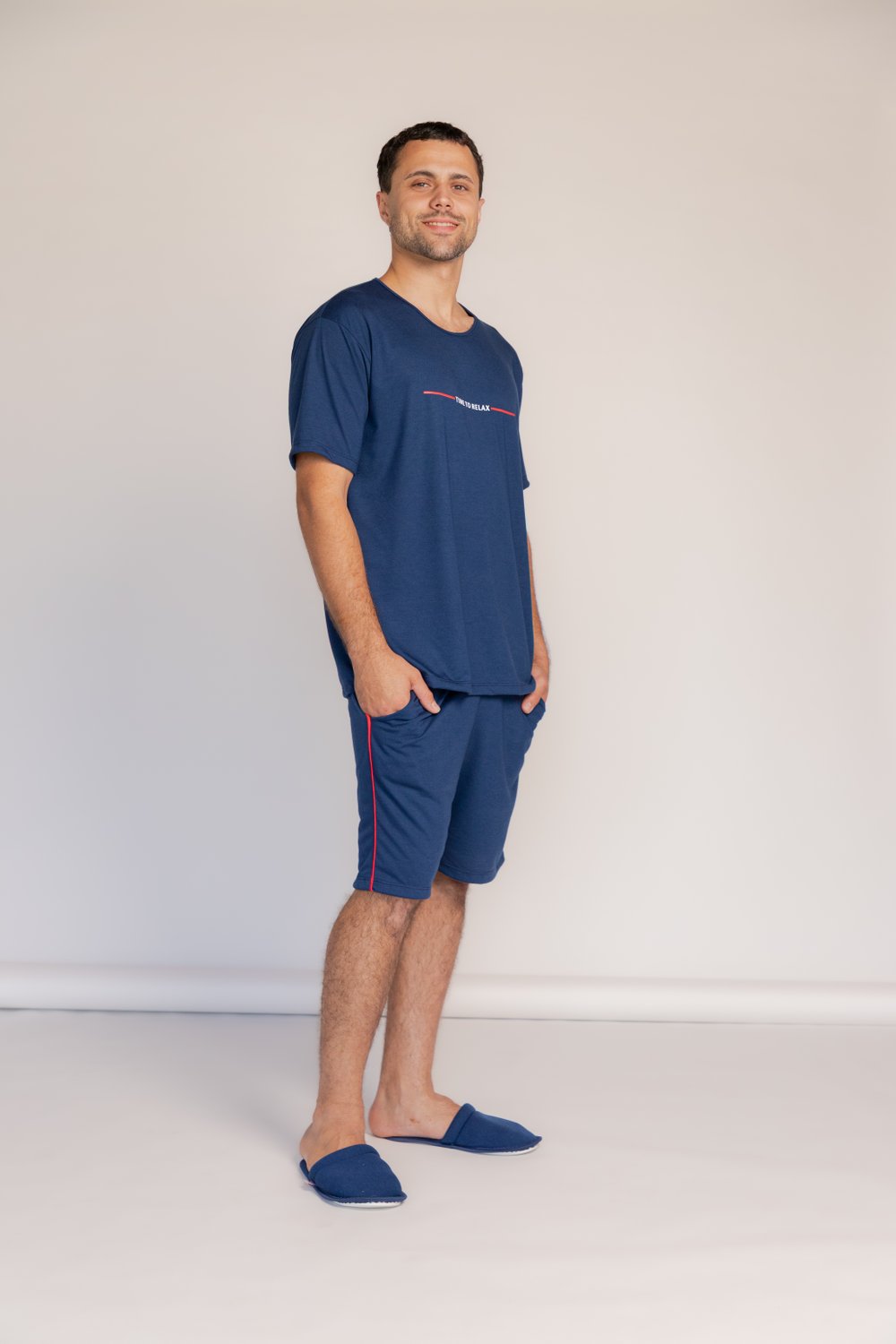 Conjunto de pijama tecido poliviscose, blusa manga curta, com decote redondo,com a frase "Time To Relax", bermuda tradicional, com detalhe na lateral em viés e etiqueta de couro, bolso funcional. Moderno, confortável, tecido super macio e de excelente qualidade. Disponível do P ao GG.