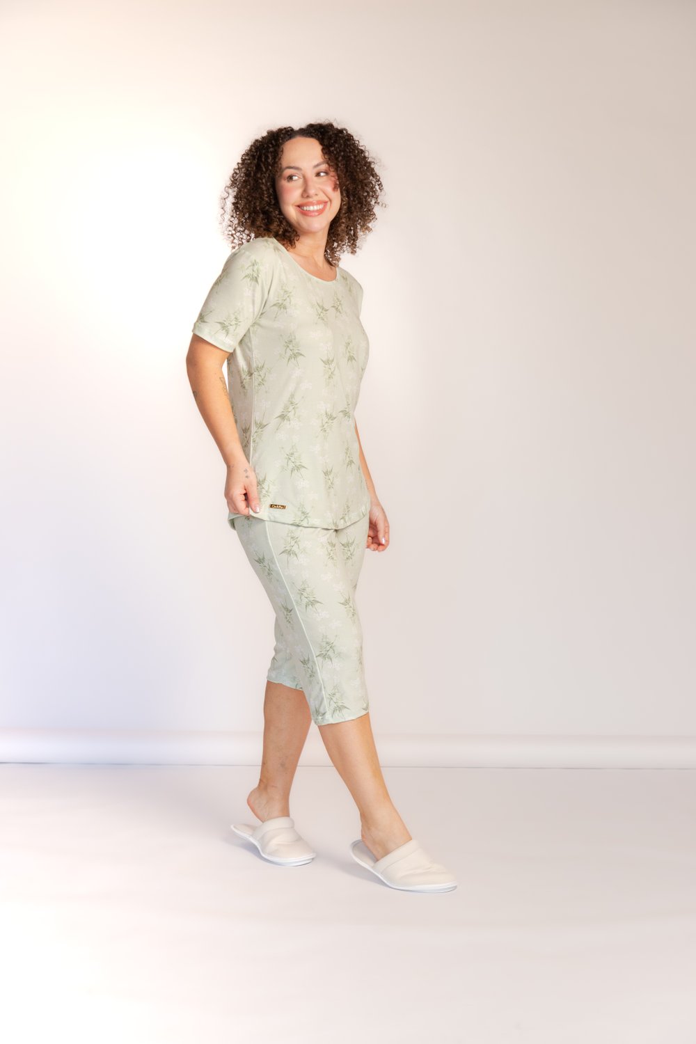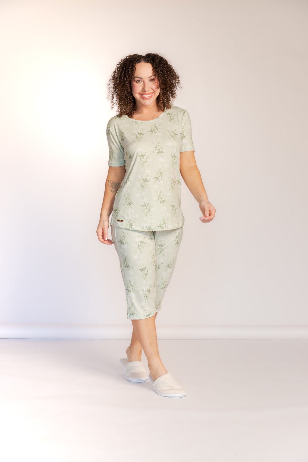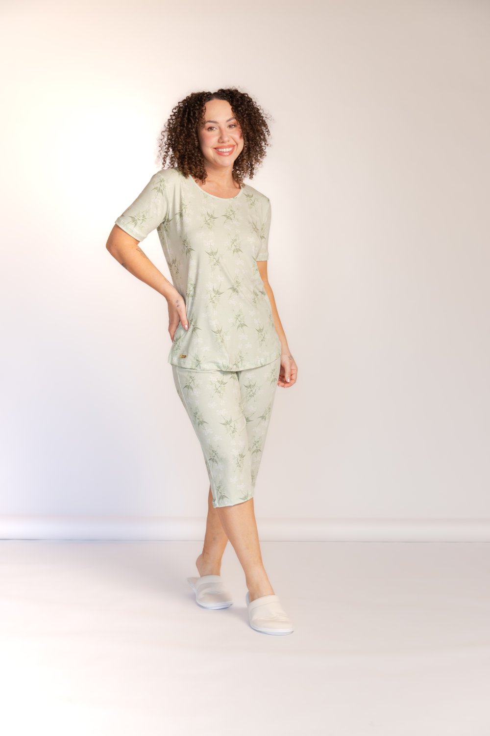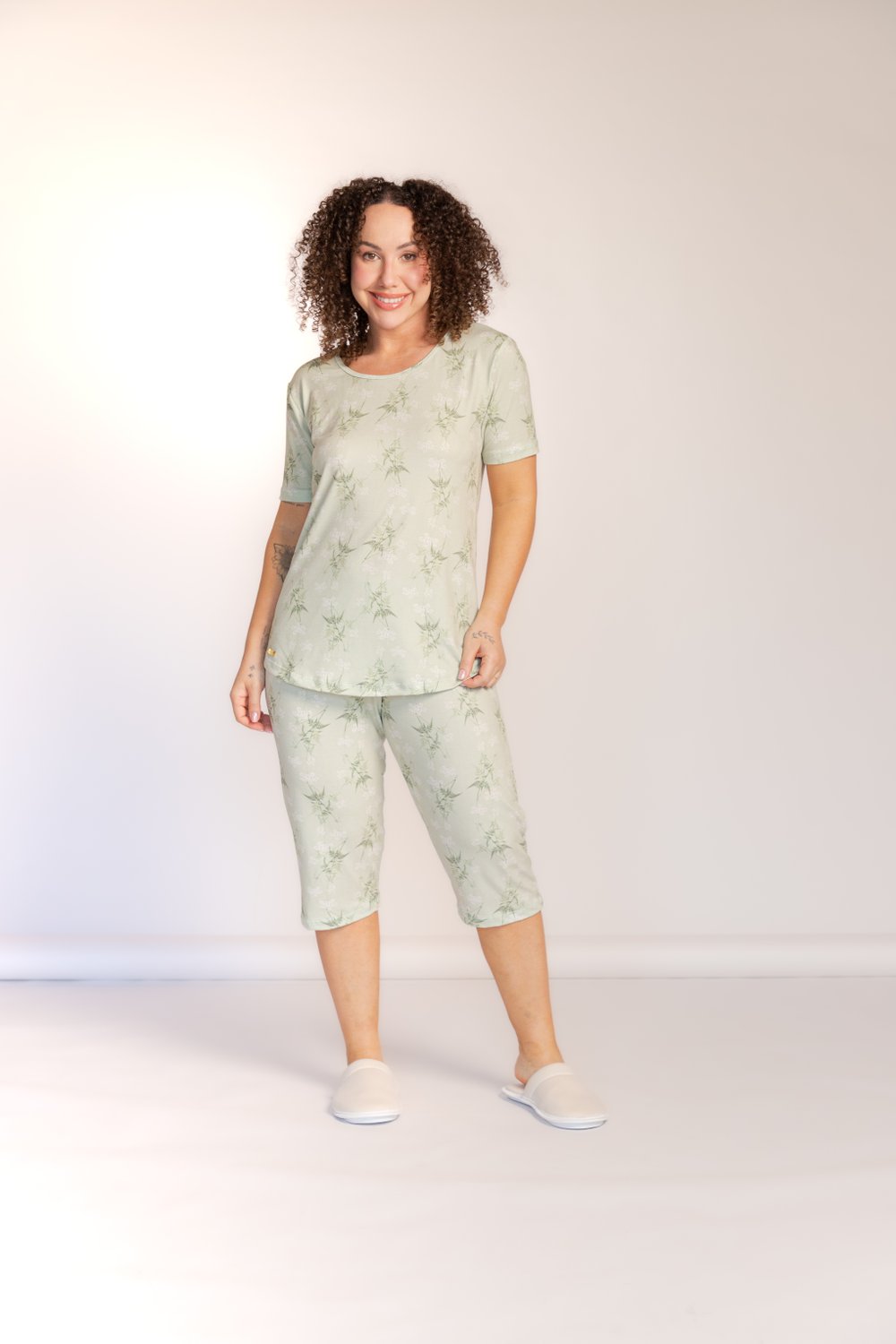 Pijama pescador Dreams estampado , decote redondo com víes da cor da peça, manga curta bainha tradicional, modelo reto, bermuda modelo pescador, bainha tradicional, proporciona conforto e leveza, além de beleza.
