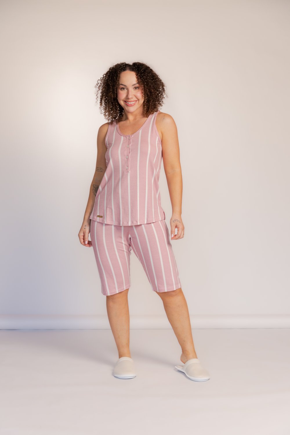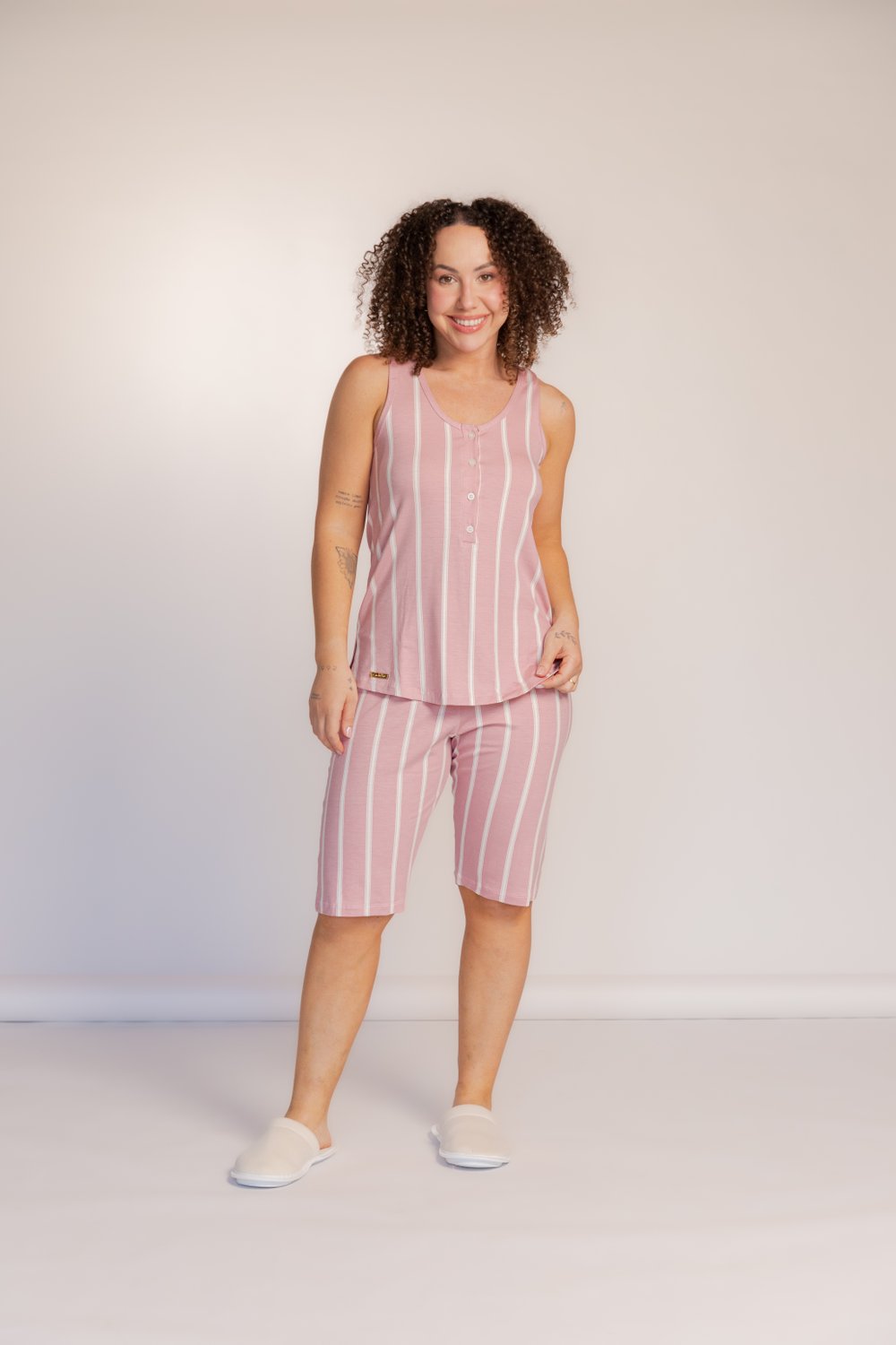 Pijama Pescador Listrado Regata Semi Aberta Visco lycra