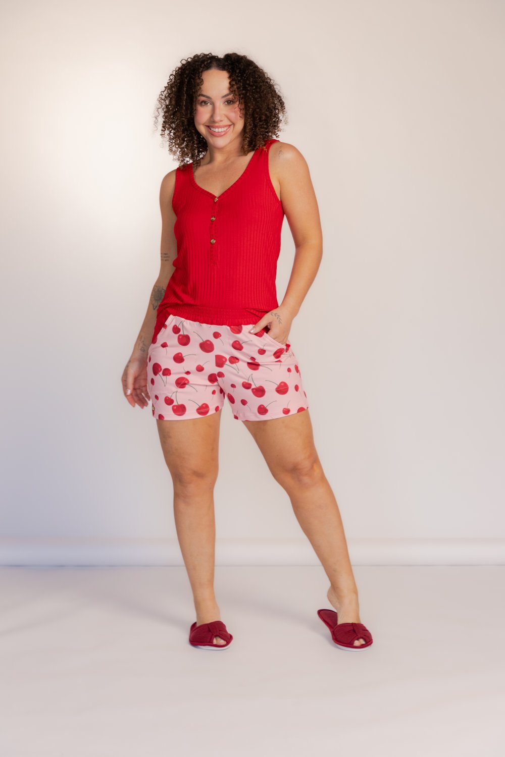 Conjunto de pijama, regata em ribana semi aberta. e decote com viés da cor da peça, detalhe em etiqueta dourada e bainha tradicional. Bermuda dreams com cós e elástico embutido. Conjunto leve, lindo e muito confortável. Disponível do P ao GG.
