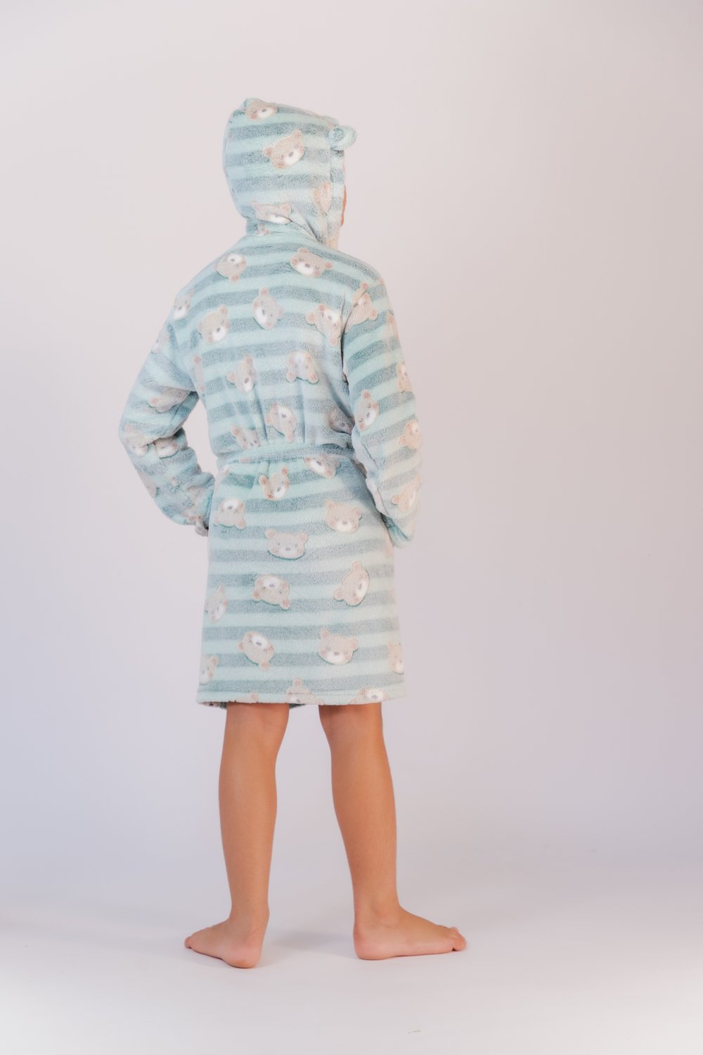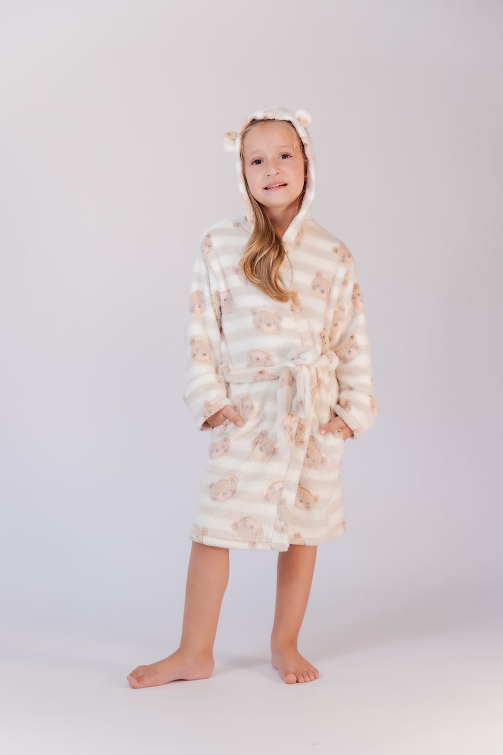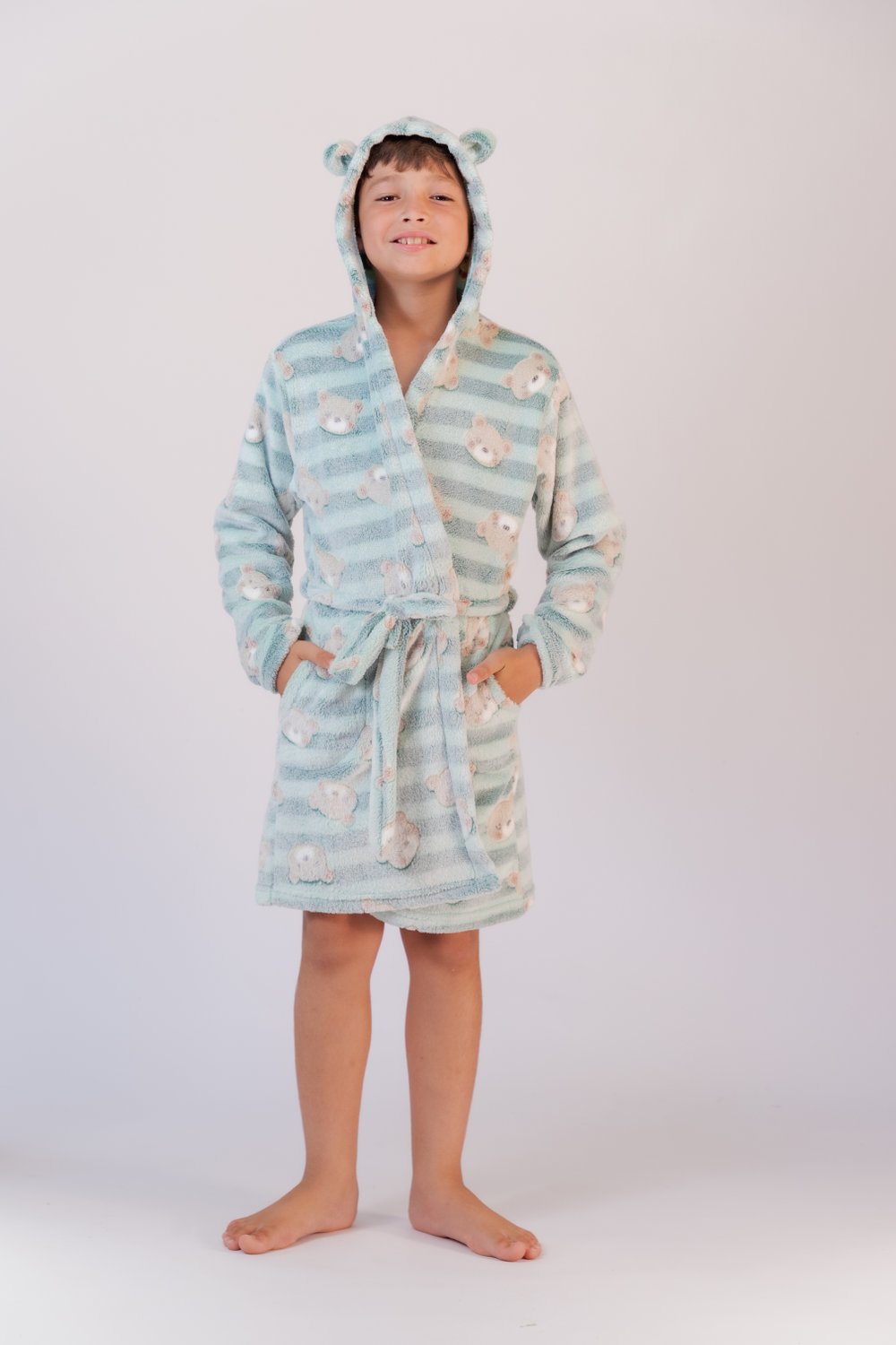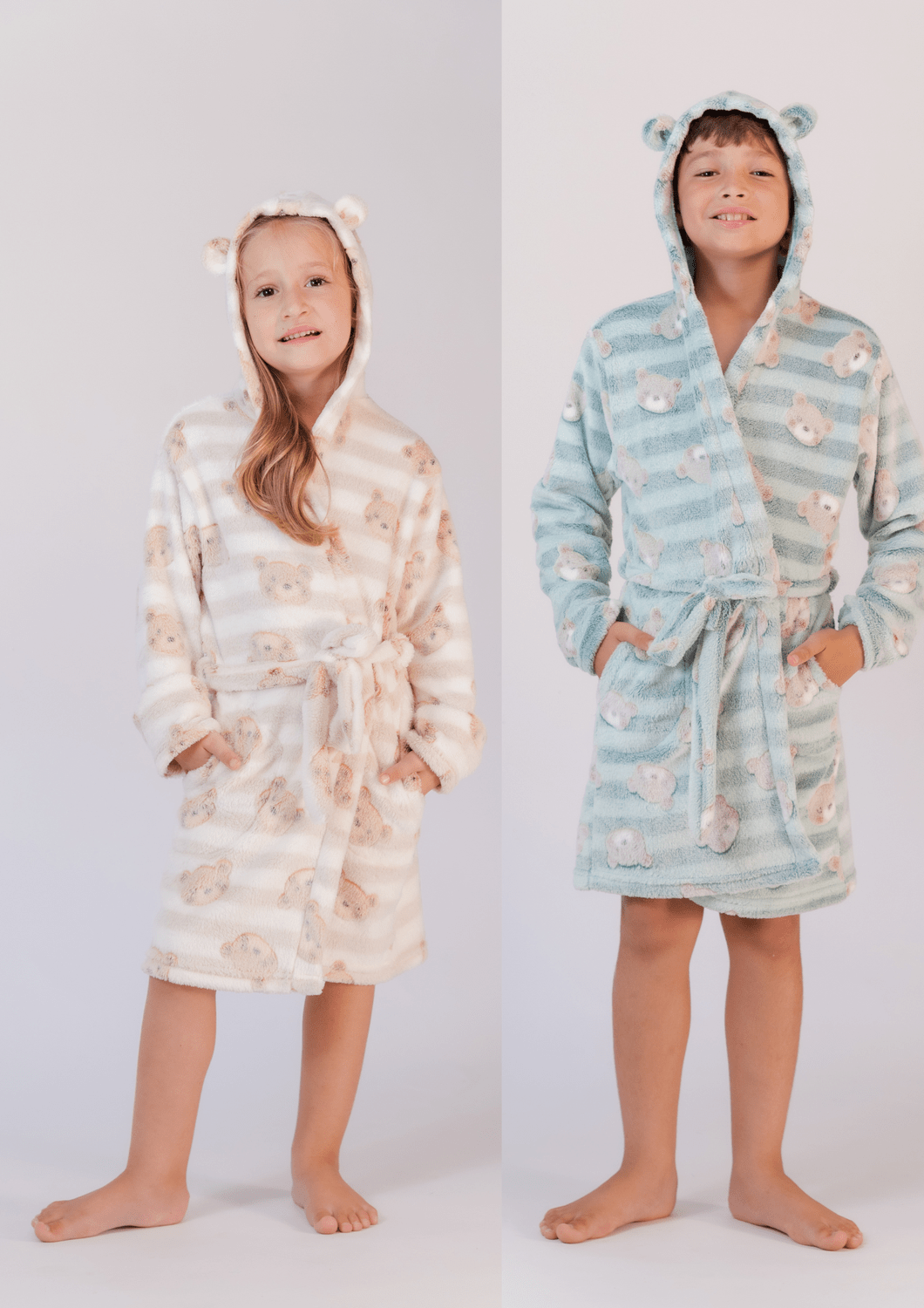 Roupão fleece infantil, com capuz, com bolsos, cinto da mesma malha, quentinho e confortável.